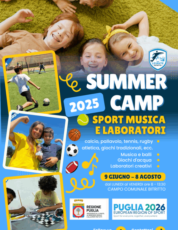 L’associazione sportiva dilettantistica LEVANTE BITRITTO nasce nel 2013 con l’intento di proporre un modello di scuola calcio unico nel suo genere. Dal 2017 ad oggi le viene riconosciuto per ogni stagione sportiva il titolo di SCUOLA CALCIO FIGC ÉLITE, massima qualifica riservata ad un ridotto numero di scuole calcio in Puglia. Inoltre dal 2019 è partner della SSC BARI all’interno del progetto SSC BARI GENERATION. In quest’ottica, lo staff Levante Bitritto, lavora quotidianamente con la consapevolezza che la sana pratica dello sport, sia fondamentale per bambini e ragazzi nel percorso che porterà loro a diventare grandi uomini, prima ancora che famosi calciatori.